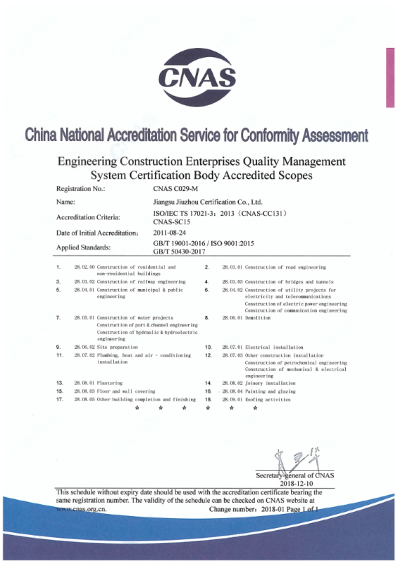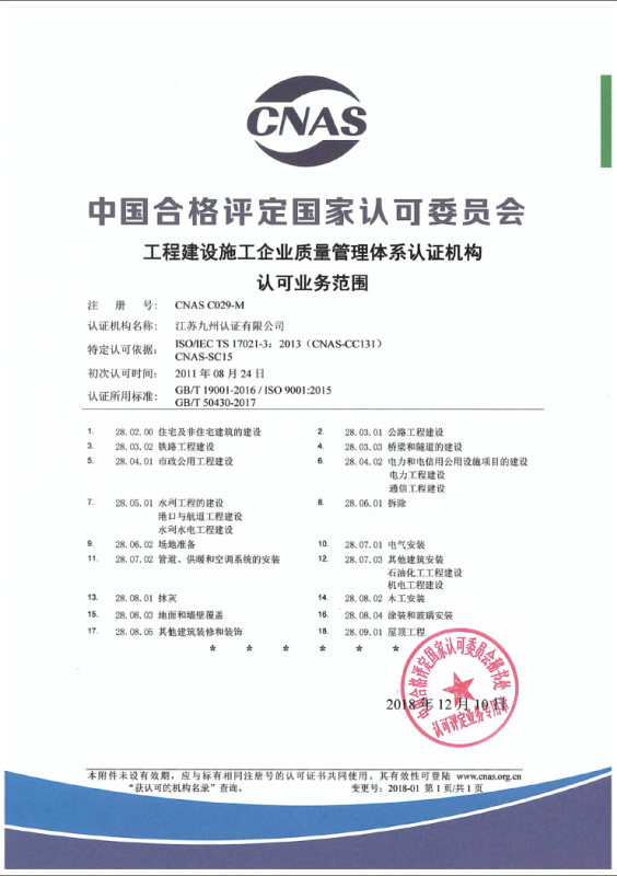 工程建設(shè)施工企業(yè)管理體系認(rèn)可業(yè)務(wù)范圍-中文