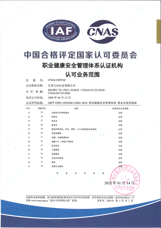 職業(yè)健康安全管理體系認(rèn)可業(yè)務(wù)范圍-中文2